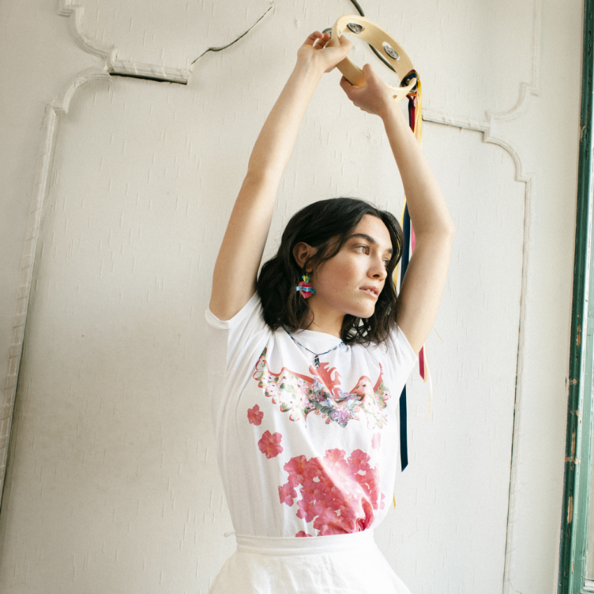 Our Model Clara is wearing size 38 – S (cm 174 height – 85 bust – 59 waist – 86 hips)