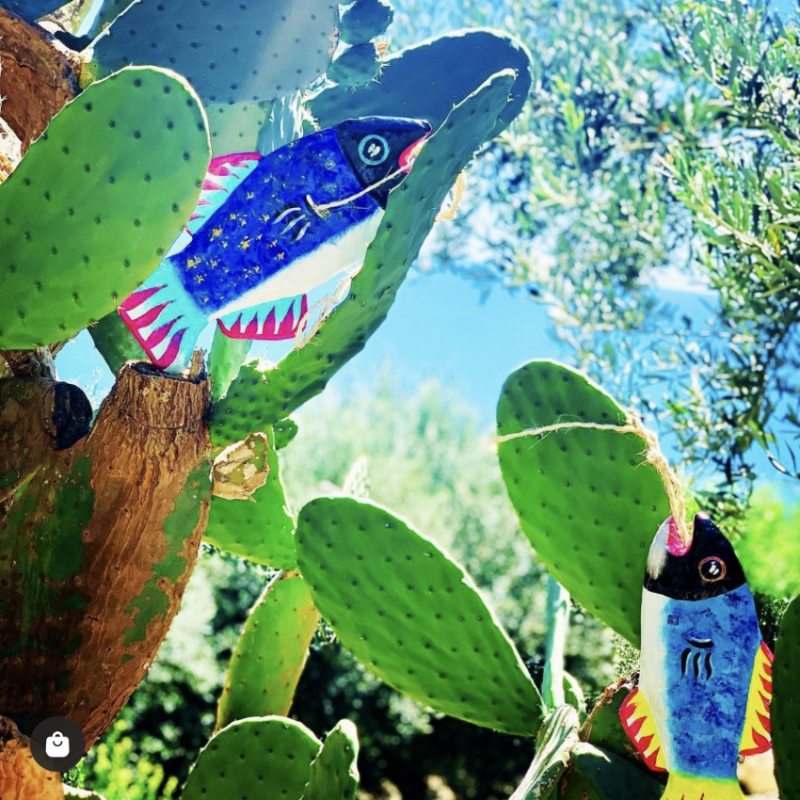 Large decorative hand painted multicolor fish with raw rope, ready to be hung. Super shiny colors with glossy finishing.