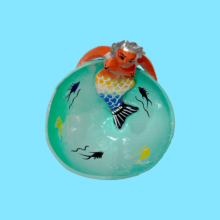 Decorative coconut hand painted bowl with clay mermaid and marine symbols. Siren represents beauty, femininity and sensuality. Multipurpose object: pocket emptier, jewel case, bowl for dry food, or…just use your creativity!