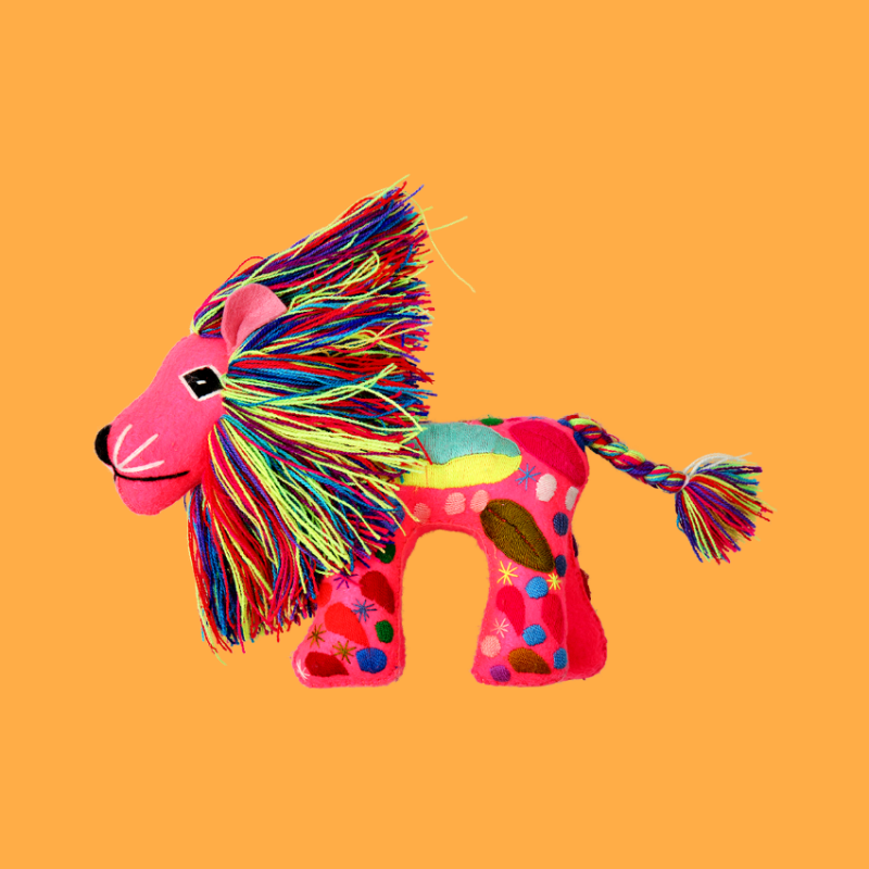 Leone decorativo in lana ricamato a mano. Non è un peluche: è una bellissima decorazione per la vostra casa!