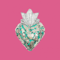 Mini decorazione murale a cuore fiammeggiante in 3D, completamente adornata da ciondoli devozionali Milagros placcati in oro o argento, applicati manualmente e inchiodati alla base in legno. Ex Voto - Amuleti Portafortuna.