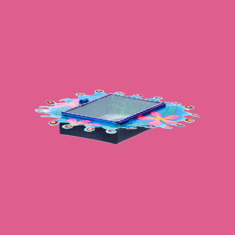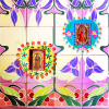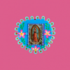Teca decorativa da parete arrotondata in 3D della Virgen de Guadalupe con disegno floreale. La finestra di vetro può essere aperta per esprimere le proprie preghiere a Maria. Completamente dipinto a mano e impreziosito internamente da brillantini.