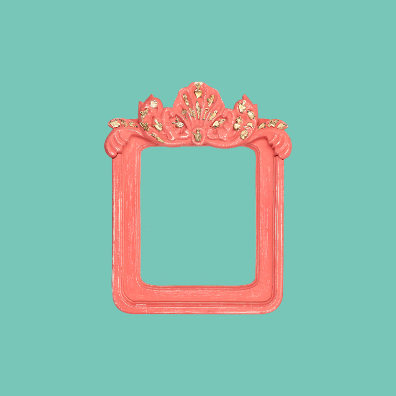 Cornice decorativa intagliata a mano con dettaglio centrale a forma di conchiglia, impreziosita da ciondoli devozionali Milagros unici applicati sulla parte superiore. Base rimovibile inclusa. Si tratta di un'opera d'arte polivalente: può essere una pura decorazione da parete, una cornice o uno specchio da parete, su richiesta. Si prega di considerare che è possibile una piccola variazione del colore. Ogni pezzo è unico.