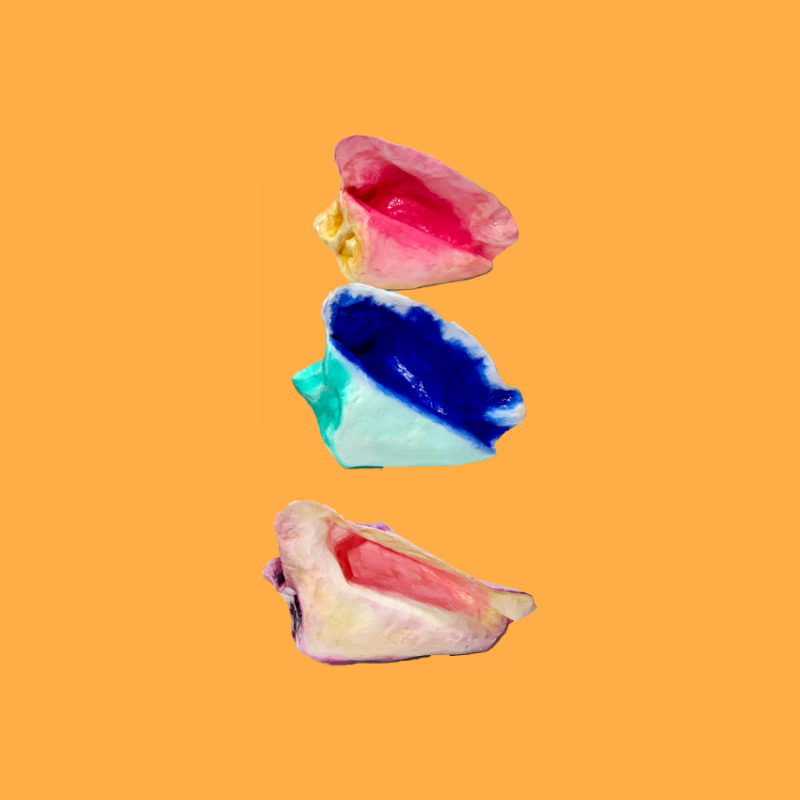 Conchiglia tropicale decorativa in cartapesta dipinta a mano con colori straordinari. L'oggetto perfetto per gli amanti del mare senza rubare niente all'ambiente marino. Ogni pezzo è unico.