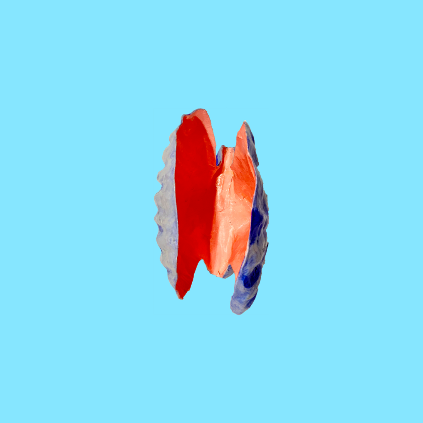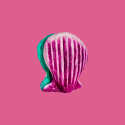 Conchiglia decorativa smerlata in cartapesta dipinta a mano con colori straordinari. Oggetto multiuso: vaso per fiori, portadocumenti o puro ornamento. Ogni pezzo è unico.