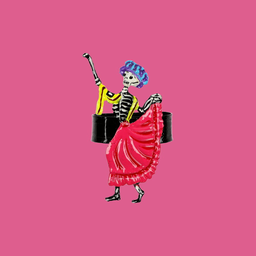 Iconica figura messicana "Catrina", portatovaglioli multicolore punzonato in bassorilievo. Lady Catrina ha un messaggio per tutti noi: avere una vita piena di emozioni e godersi il proprio tempo il più possibile!