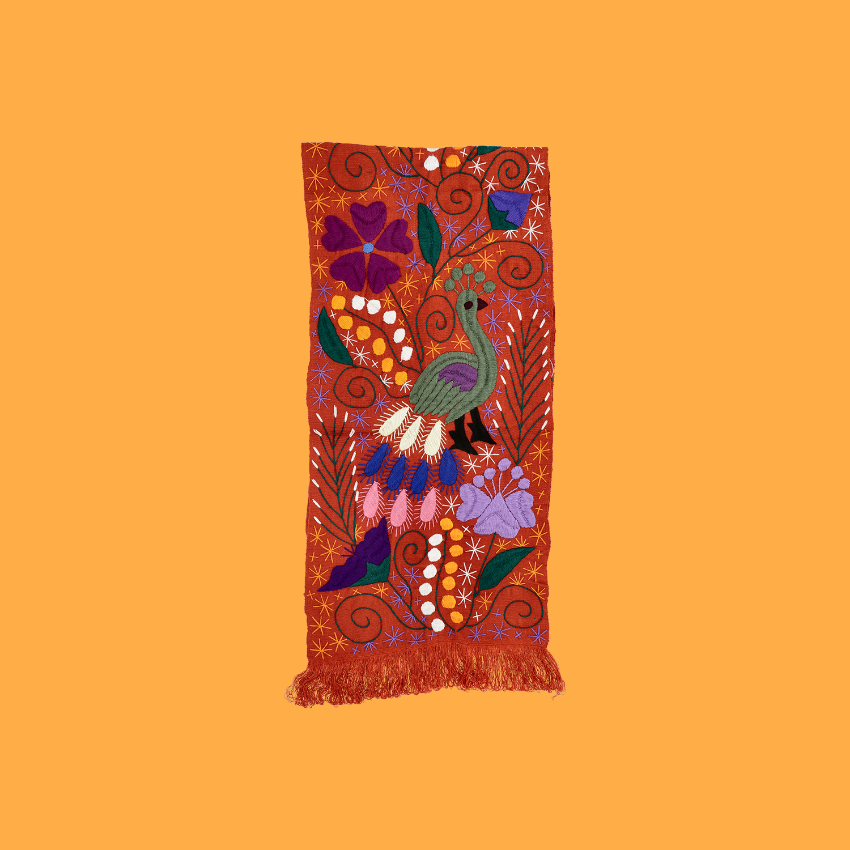Arazzo multicolore ricamato a mano e decorato con animali tropicali e natura, da una giungla ideale. Gli artigiani del Chiapas usano mescolare estratti di frutta, piante e fiori, ottenendo i colori per tingere i filati. Ogni arazzo può essere utilizzato in molti modi diversi: come decorazione murale, tovaglia, copriletto o divano, coperta... basta trovare l'uso più adatto! Ogni pezzo è realizzato a telaio. Lavare a mano o a secco.
