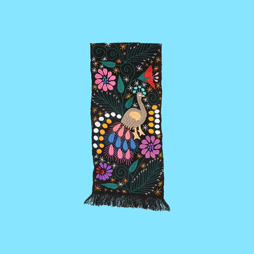 Arazzo multicolore ricamato a mano e completamente decorato con animali e natura tropicale, proveniente da una giungla ideale. Gli artigiani del Chiapas usano mescolare estratti di frutta, piante e fiori, ottenendo i colori per tingere i filati. Ogni arazzo può essere utilizzato in molti modi diversi: come decorazione murale, tovaglia, copriletto o divano, tappeto, coperta... basta trovare l'uso più adatto! Ogni pezzo è realizzato a telaio. Lavare a mano o a secco.