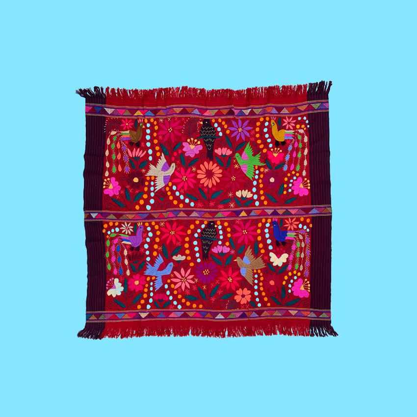 Arazzo multicolore extra-large ricamato a mano e decorato con animali tropicali e natura, da una giungla ideale. Gli artigiani del Chiapas usano mescolare estratti di frutta, piante e fiori, ottenendo i colori per tingere i filati. Ogni arazzo può essere utilizzato in molti modi diversi: come decorazione murale, tovaglia, copriletto o divano, tappeto, coperta... basta trovare l'uso più adatto! Ogni pezzo è realizzato a telaio. Lavare a mano o a secco.