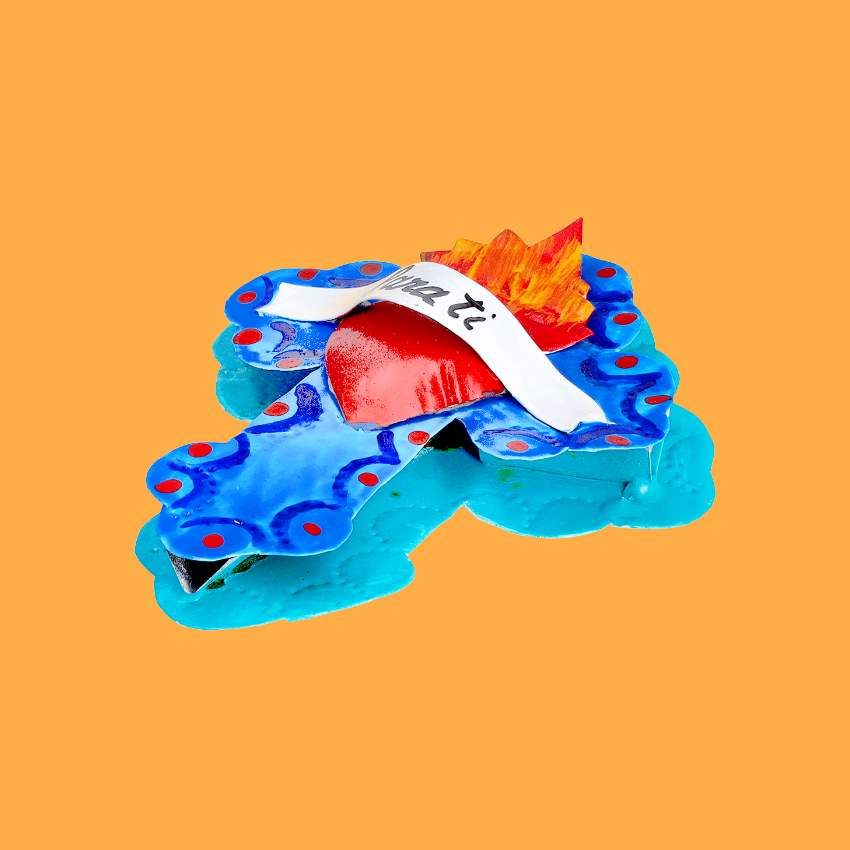 Croce - decorazione murale 3D a doppio colore con frase d'amore. La croce è un simbolo cosmico potente, che rappresenta il cerchio delle energie della natura: collega la terra al cielo e l'ovest all'est. Un prezioso amuleto per proteggere la vostra casa. Ex Votos - Amuleti Portafortuna."