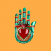 Decorazione murale lucida multicolore a forma di mano con cuore centrale, punzonato in bassorilievo. La mano è ampiamente considerata simbolo di carità ed empatia: significa "dal cuore". In diverse culture, mettere una mano sulla porta di casa significa protezione e buona fortuna. Ex Votos - Amuleti Portafortuna.
