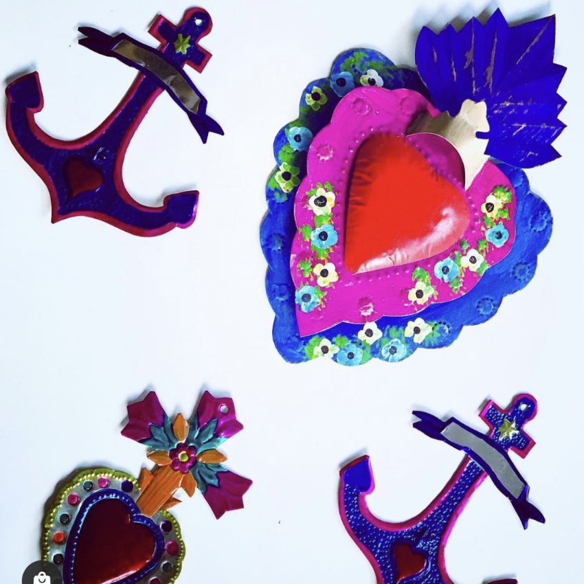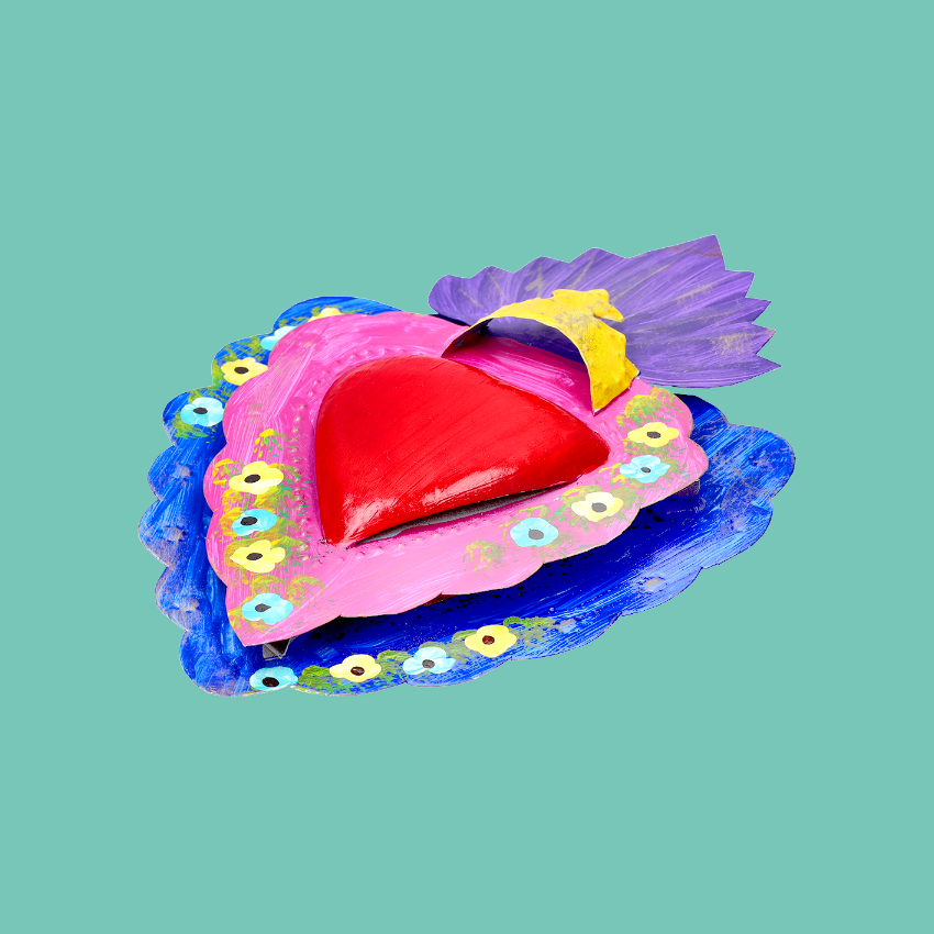 Decorazione murale a doppio strato con cuore centrale in 3D e cornici multicolore, impreziosita da un disegno floreale folk. L'oggetto vuole celebrare tutte le forme dell'amore, della luce e dei pensieri positivi. Ex Voto - Amuleti Portafortuna.