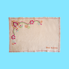 Tovaglietta singola in lino naturale con disegno floreale e cuore centrale, realizzata a mano in Portogallo.